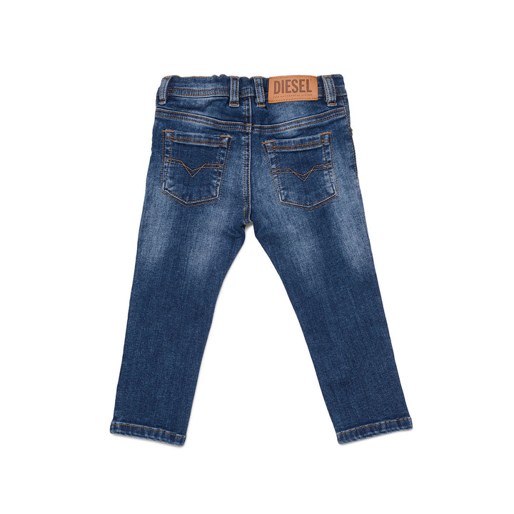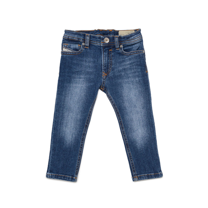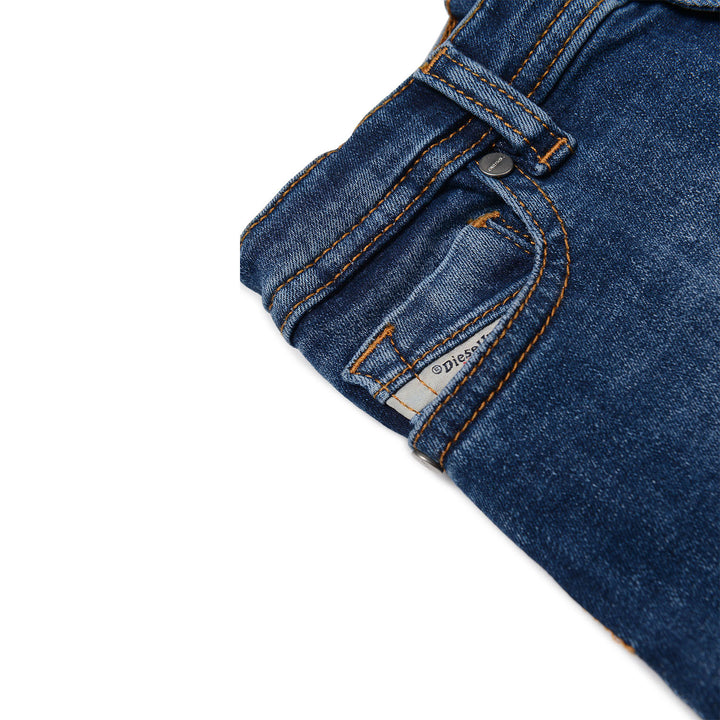 Skinny style with narrow leg from thigh to ankle.Crafted from blue denim with a clean look.