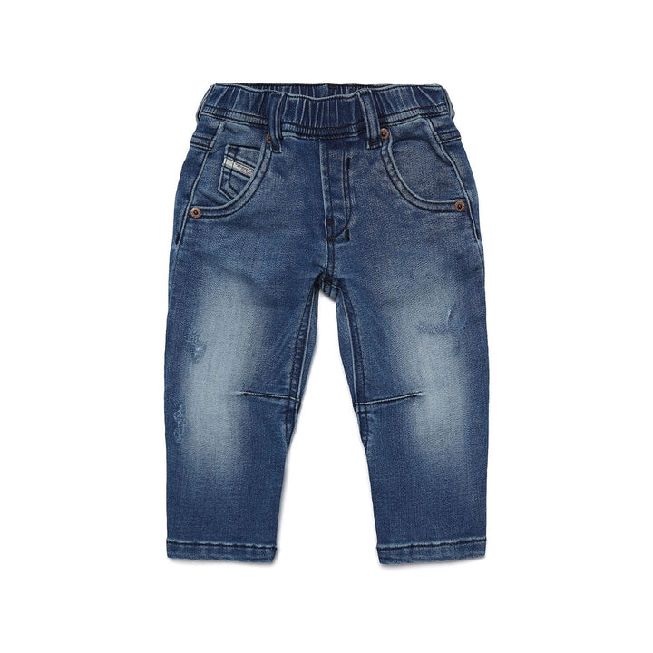 Relaxed style with an elasticated waist, crafted from JoggJeans® for the utmost comfort. It features abrasions, small broken areas and a wash treatment for a contemporary look.