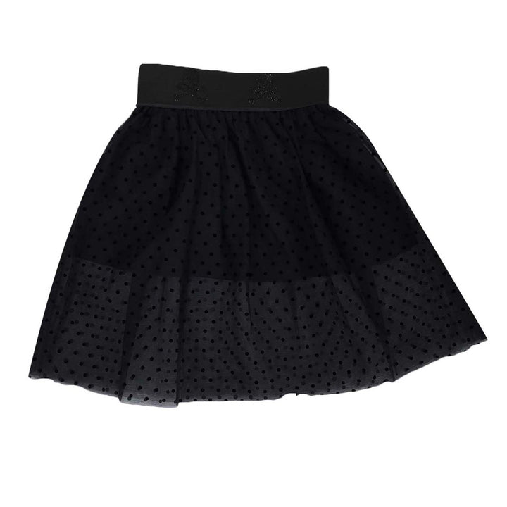 To doll up your little girl, look no further. Get this black-dotted Philipp Plein skirt right here! The sheer fabric, elasticized waistband with black stud detailing, and polka dot prints all over, altogether are making this skirt excellent bottom wear to style your little fashionista. Pair it with a stylish top or a comfy shirt, the styles are endless.