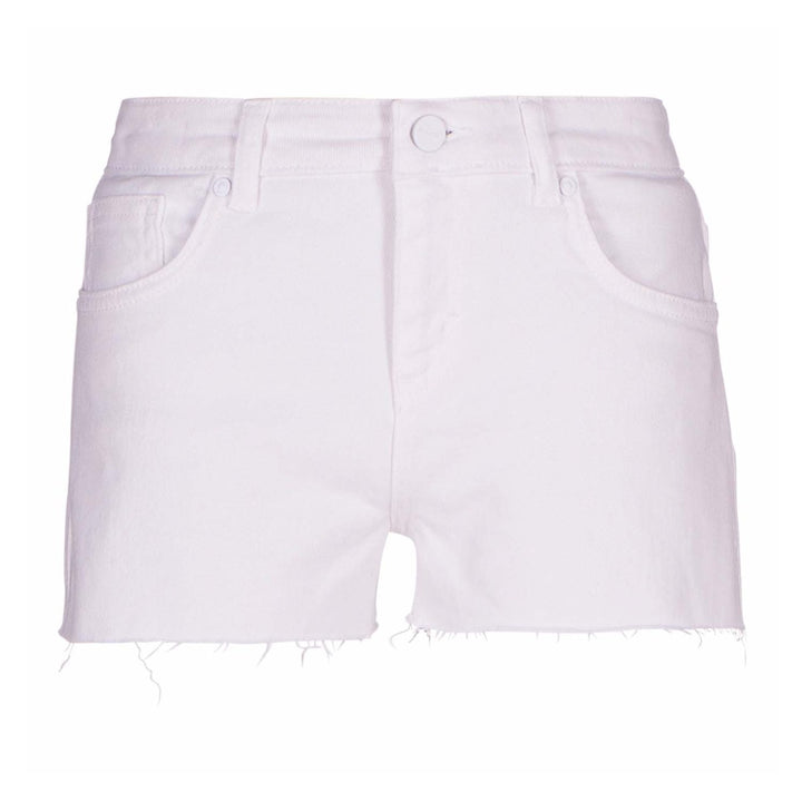 A classy pair of white denim shorts are forever in trend. We are bringing here the same classy shorts for you to buy for your little girl and dress her in different ways with the same pair of white denim shorts. It is designed with a fringed hem, two pockets in the front, and an embossed logo at the back. She can pair the white denim shorts in different ways with different t-shirts, tops, or casual shirts. All that you need is to buy it right here. | \