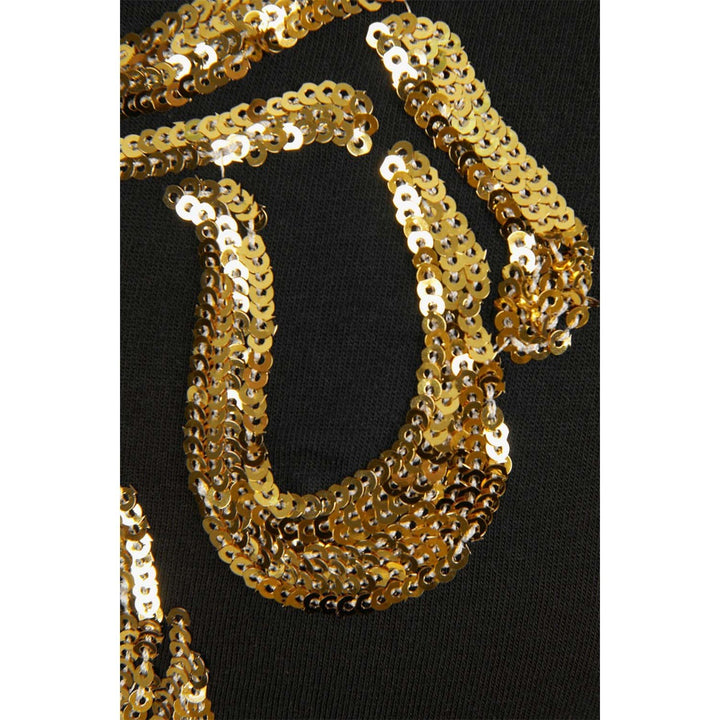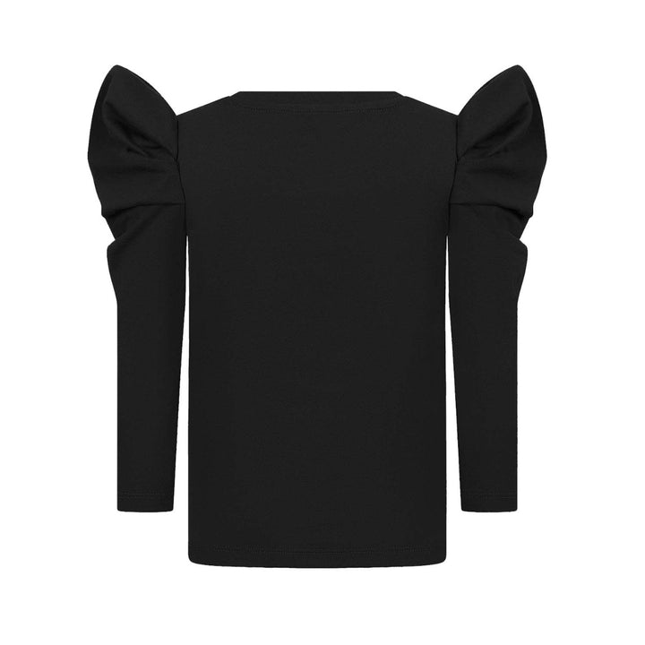 Iconic brand Elie Saab brings beautiful style to her wardrobe this season with this girl’s black sweat top. With a high neckline and straight fit, it has long sleeves and pretty frill details around the shoulders. Finished with a beautiful gold sequin bow detailing through the front.
