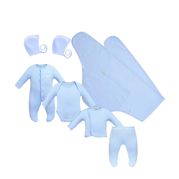 Newborn 7ps Set (Coverall, Top, Footed Pant, Bodysuit, 2 Bonnets, Receiving Blanket)