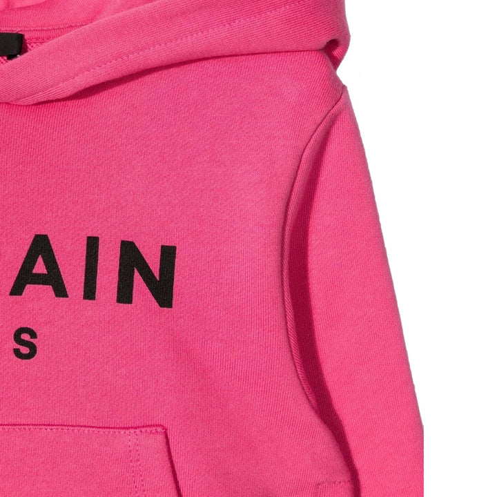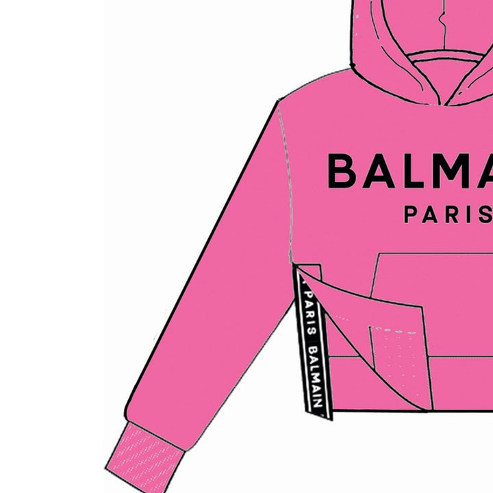 One of Balmain's most enduring styles is the label's block-lettered logo print, which decorates the front of this fuchsia pink cropped cotton hoodie.
