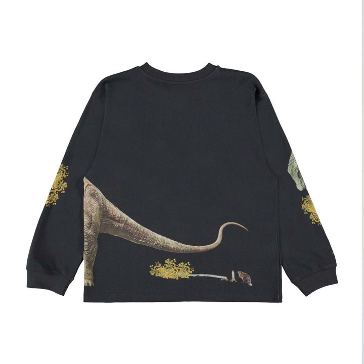 Molo x Jurassic World. Rube is a long sleeve top with a print of two large Apatosaurs that cover the front, sleeves and the back. The back also has a beaver and a tree stump. Molo is proud to present our fantastic international partnership with Universal Studios for the long-anticipated film Jurassic World Dominion. The partnership consists of an exciting collection where the spect\