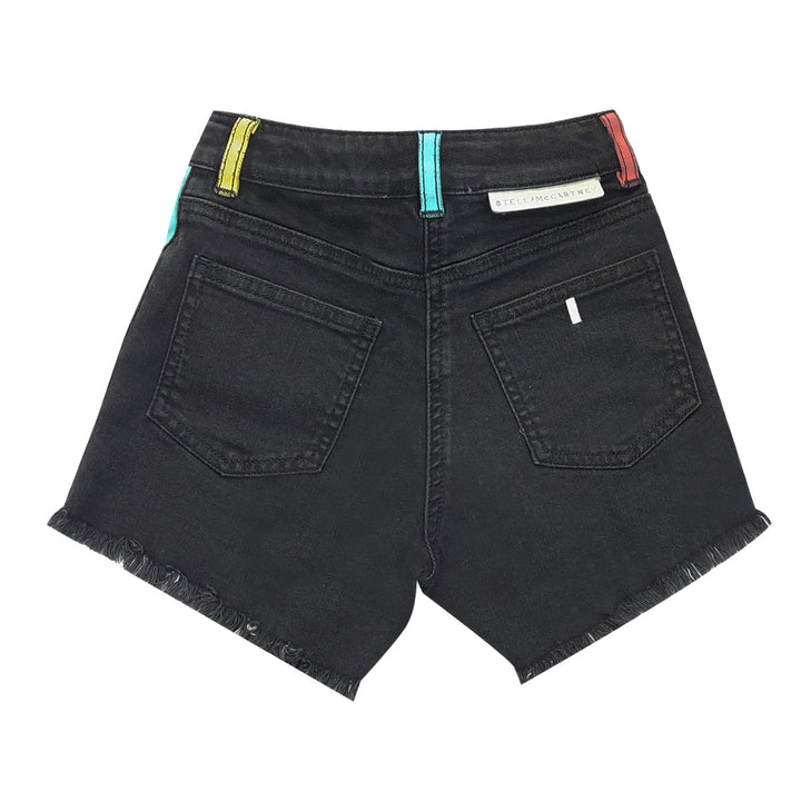 Black Denim Shorts With Colourful Pockets & Belt Loops