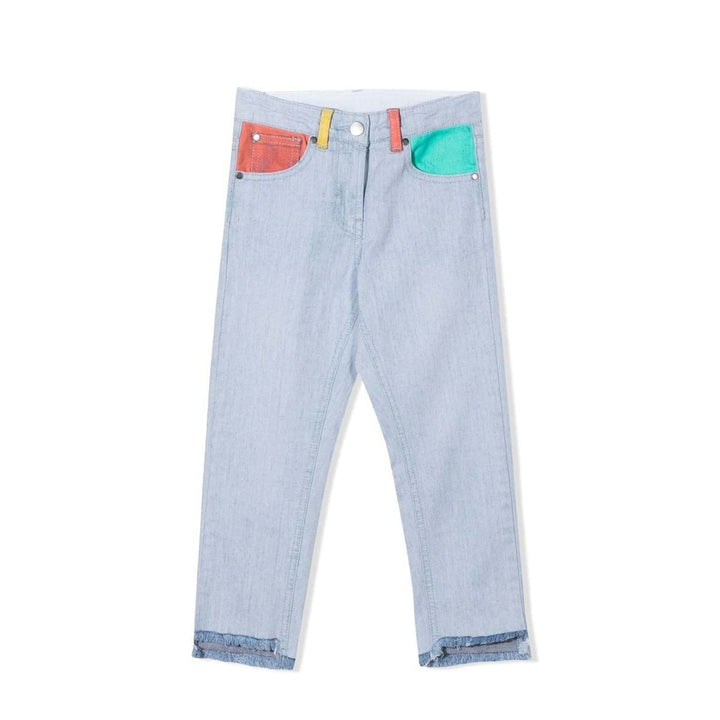 Dress up your little one in a stylish way with this pair of jeans. The colorful pockets and the belt loops are the best color pop style addition to these bottom wear by Stella McCartney. These jeans will be loved for their pop of color.