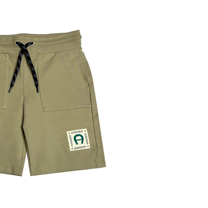 Beige shorts for baby boys by AIGNER, made in a soft and stretchy cotton jersey. In a casual design, they have useful side seam pockets and a comfortable logo jacquard elasticated waistband.