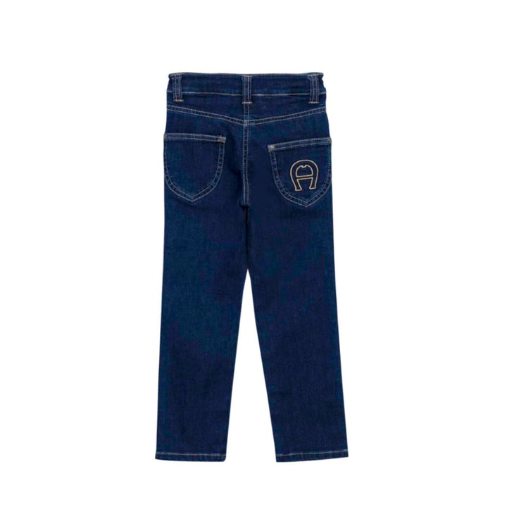 Looking for a stylish pair of denim for your little one? Here’s the one to perfectly meet up your needs. This stylish pair of Aigner denim pants with a golden strip on the sides featuring the brand logo and name is amplifying the style factor of the denim pants. Also, one of the back pockets of the jeans features the embroidered logo of the brand. It is designed with two front pockets and two back pockets.