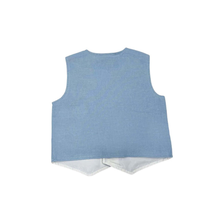 Turn your precious little boy into a stylishly dapper little man in this woven waistcoat. It features a V-neck and pockets. Style this with monochrome blazer and trousers