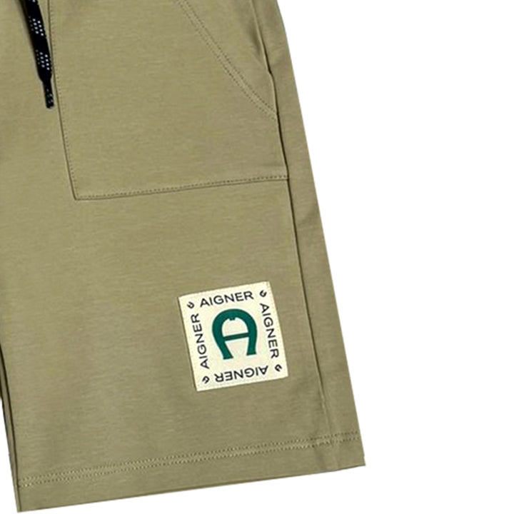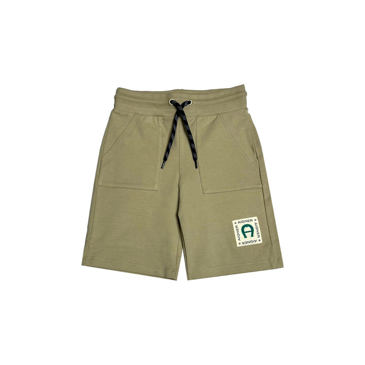 Beige shorts for boys by AIGNER, made in a soft and stretchy cotton jersey. In a casual design, they have useful side seam pockets and a comfortable logo jacquard elasticated waistband.