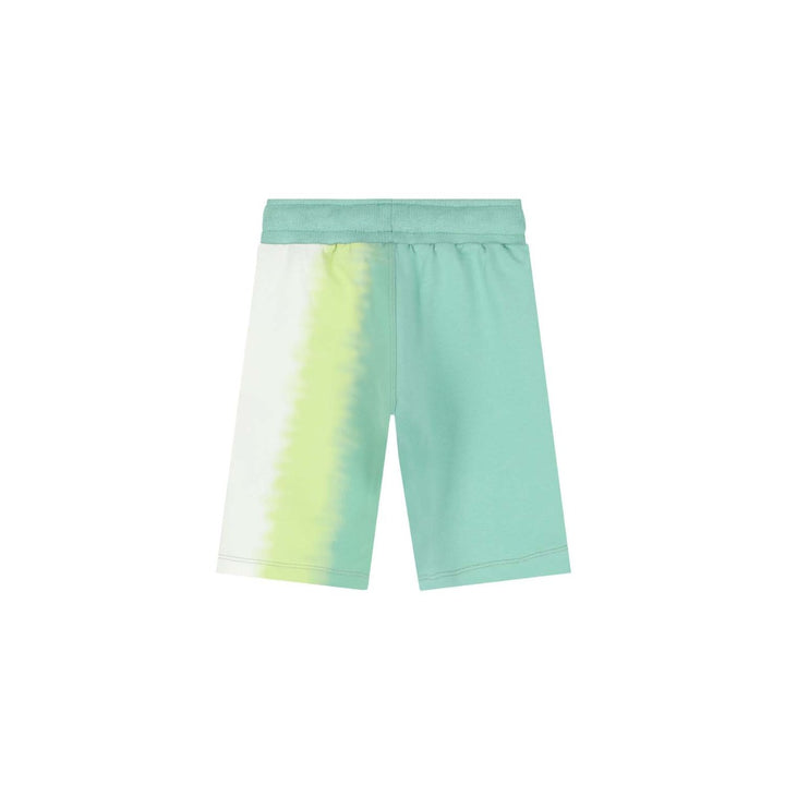 Green ombr? shorts for boys by German designer AIGNER, with navy blue logo embroidery on one leg. Made from soft and stretchy cotton jersey, these Bermuda-length shorts have a drawstring waist with contrast branded ties for designer appeal.