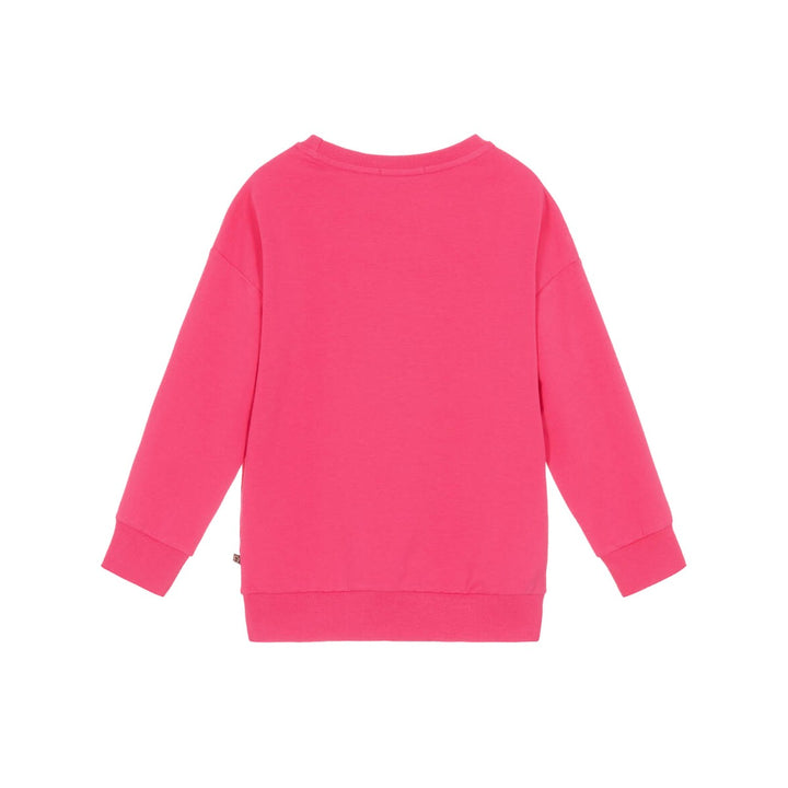 Vibrant pink cotton sweatshirt for girls by AIGNER. Made in lightweight sweatshirt jersey, it has a gorgeous bag design on the front, in black appliqué with iridescent detail, an embroidered gold signature 'A' horseshoe logo, and a printed chain strap. This casual wardrobe staple has ribbed trims and a relaxed fit for comfortable wear.