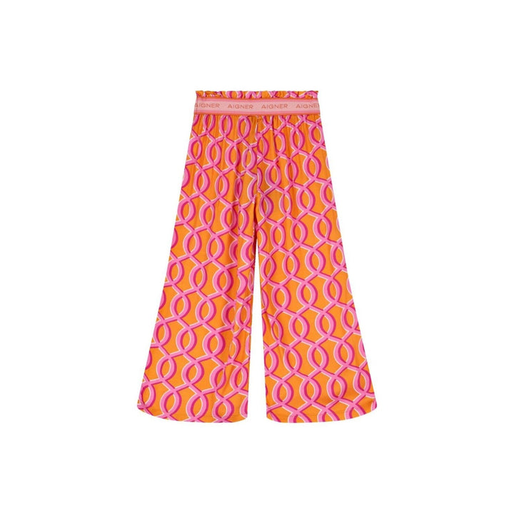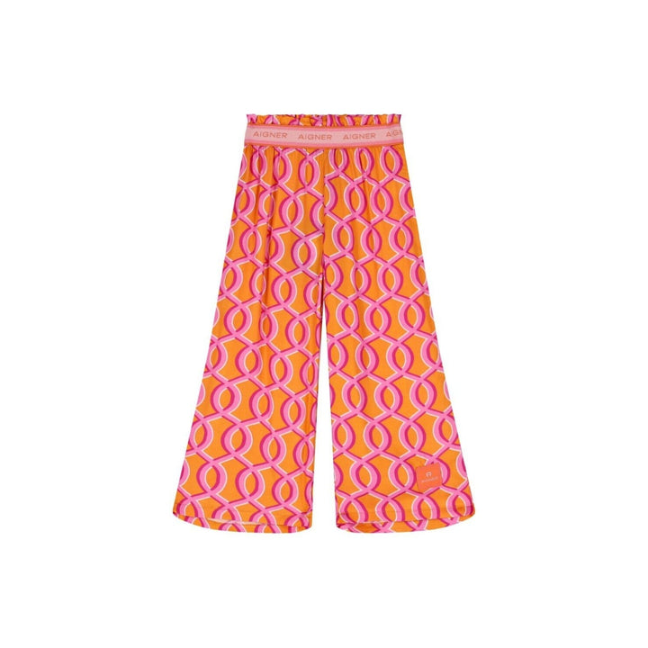 Orange trousers for girls by German designer Aigner. Made from soft viscose, with all-over pink and white pattern details. Finished with an elasticated logo waistband for comfortable fit.