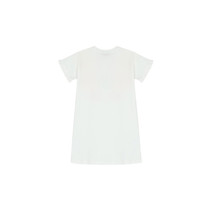 From AIGNER, white dress for girls with a large logo print in soft pink, orange and yellow circles. With seamless, frill-trimmed sleeves for a feminine finish and made in cotton jersey, it is stylish and comfortable.