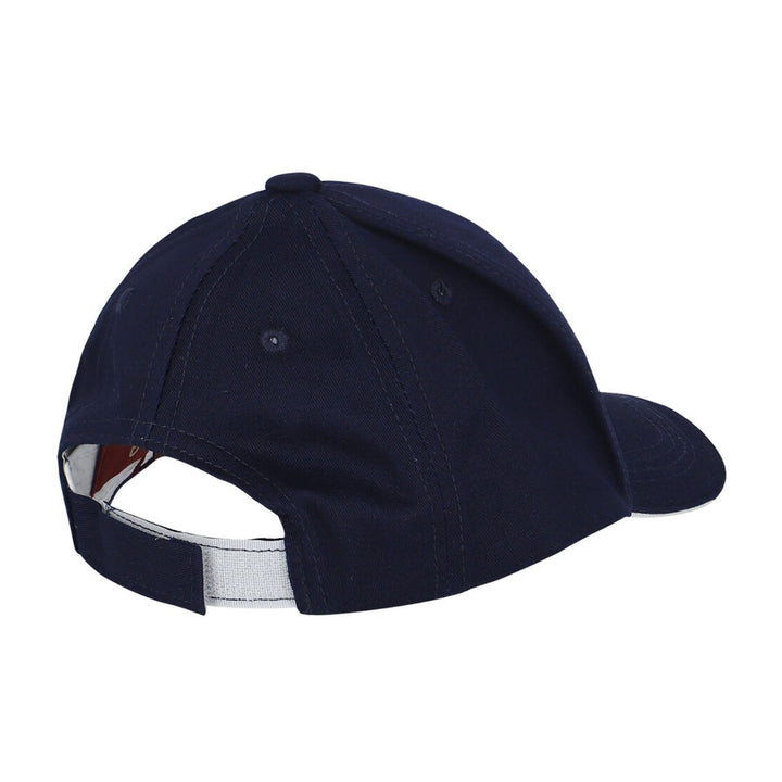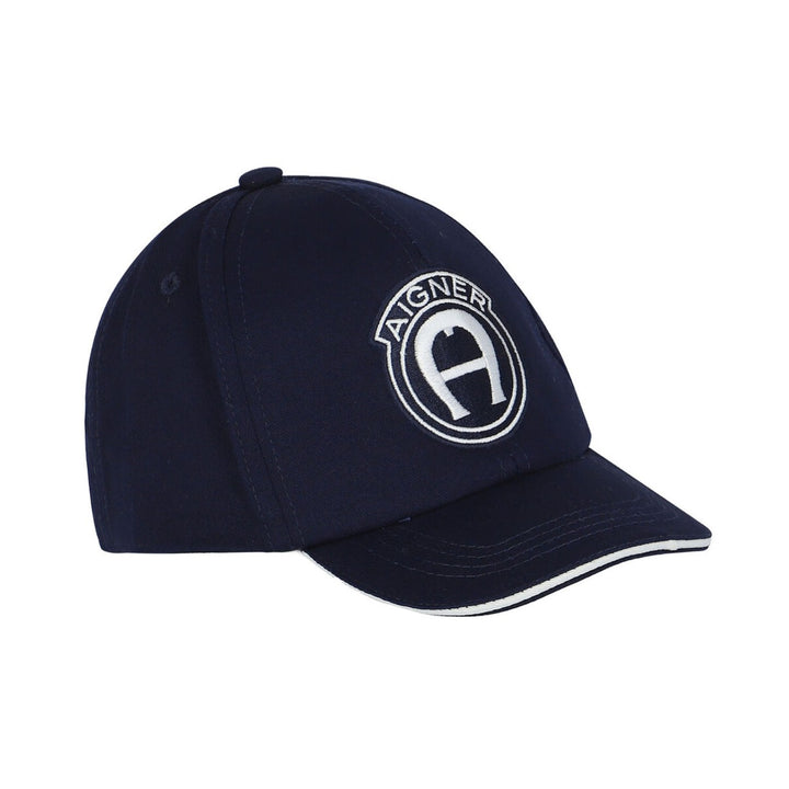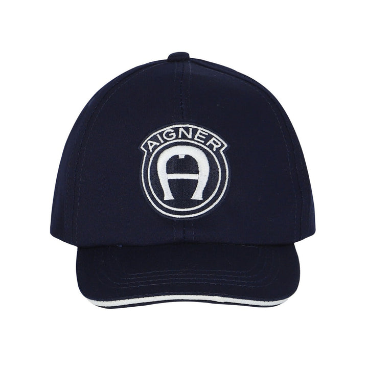 Navy logo cap for girls or boys by Aigner Kids. It features a large embroidered white logo on the front. It has an adjustable velcro fastening at the back
