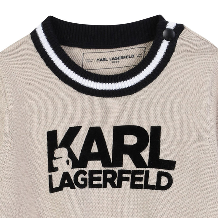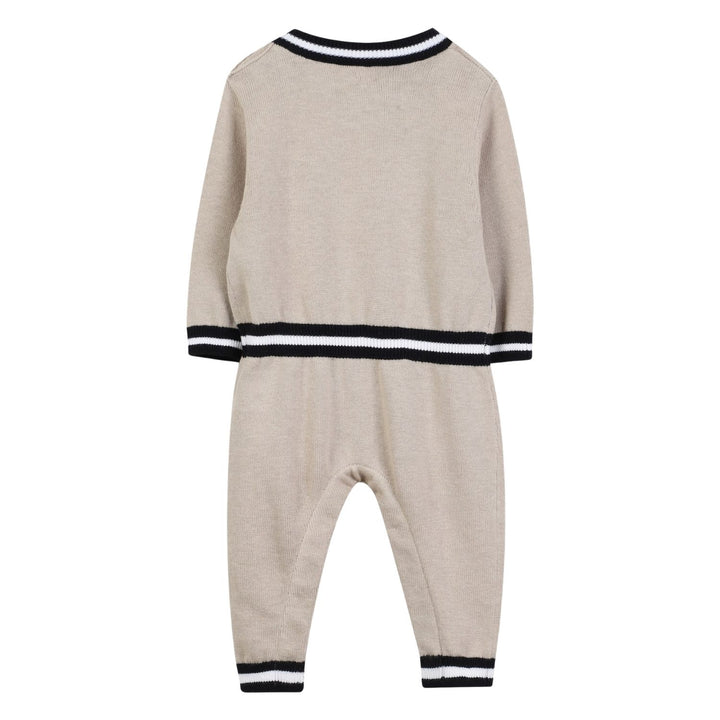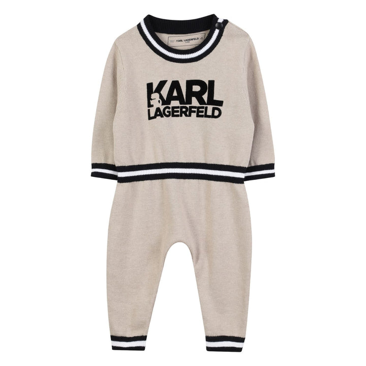 Adorable beige logo-print romper for baby boys by Karl Lagerfeld, crafted from soft cotton for cozy everyday wear.