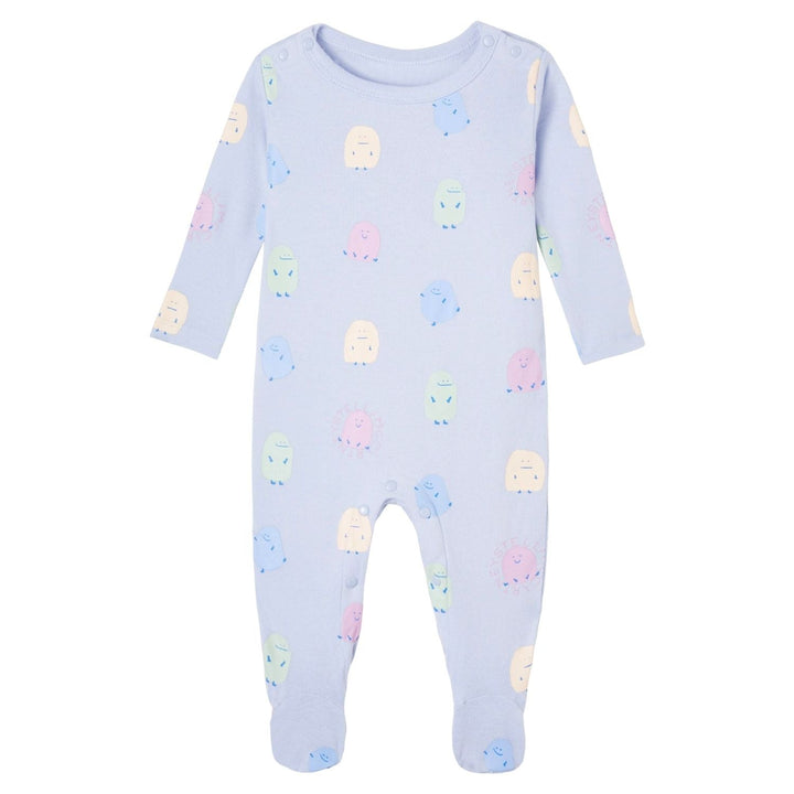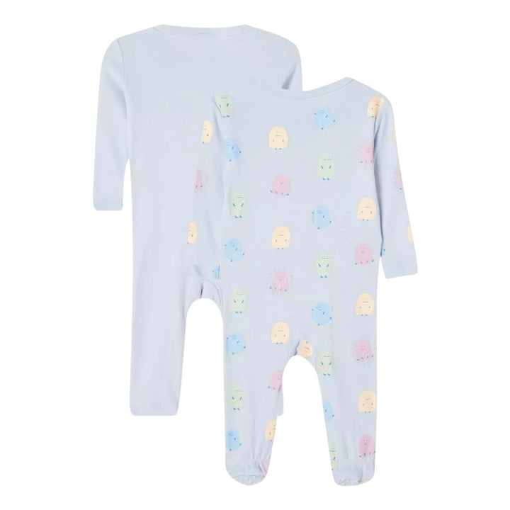 Set of two blue rompers featuring a stylish logo print, made from 1% soft cotton for all-day comfort and breathability.