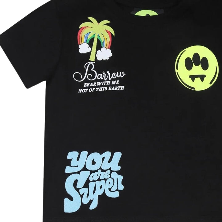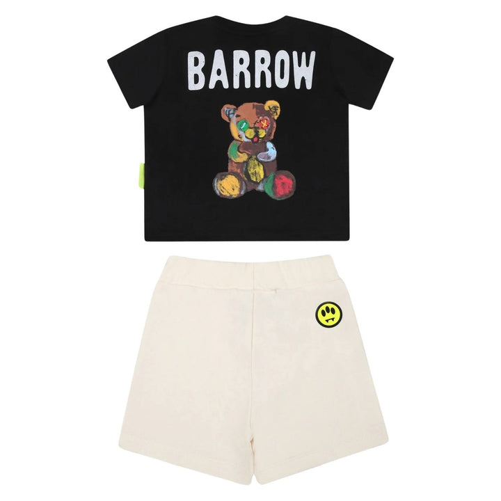 Barrow Kids Logo-Print Short Set in black with a crew neck and short sleeves. Elasticated waistband for comfort. Made from 1% cotton for a soft fit.