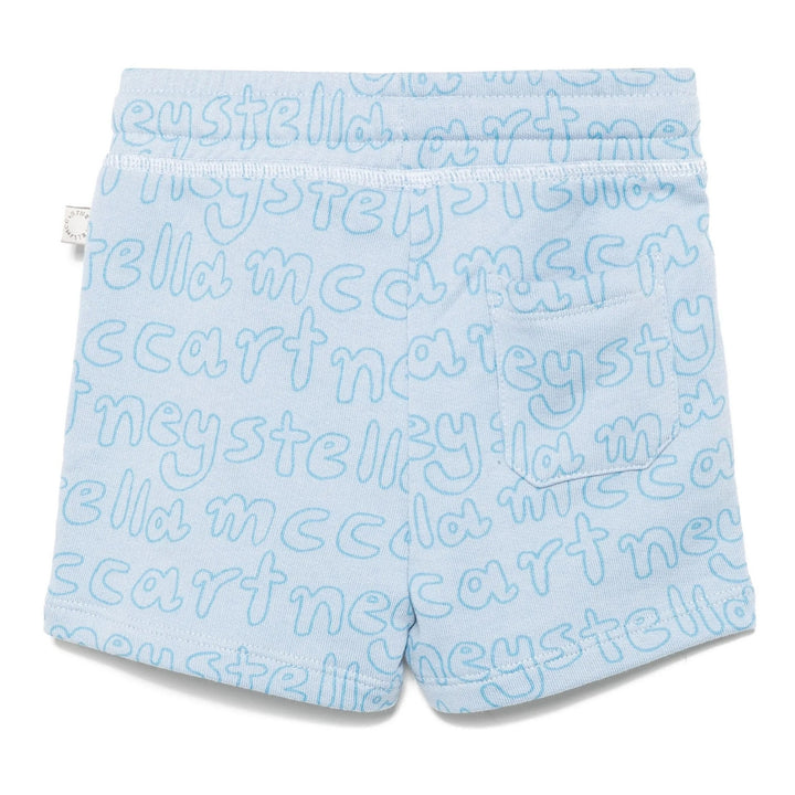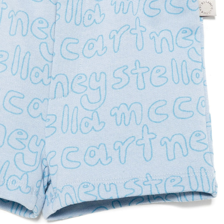 Sky blue logo-print shorts with an elasticated drawstring waistband, rear patch pocket, and soft jersey lining. Comfortable and stylish for everyday wear.