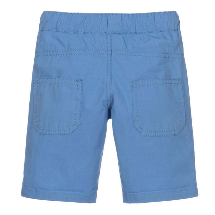 Blue shorts for baby boys by AIGNER, made in soft lightweight cotton twill. They have white and pale blue logo tape on the sides, with a rubber logo badge on the front. There are four pockets and drawstring waistband that fastened with branded cords.