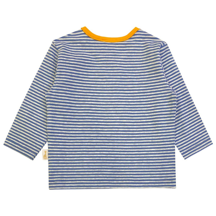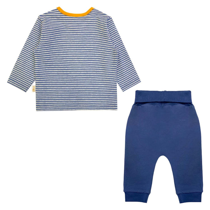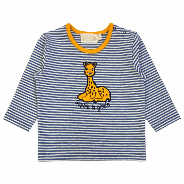 Adorable blue striped outfit featuring a charming embroidered Sophie la Girafe logo print, crafted for comfort and style in everyday wear.