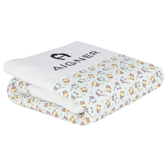 Wrap your little one in softness with this blue logo-print blanket from Aigner. Made from a gentle cotton blend with a hint of stretch, it's perfect for cuddles, naps, or outings combining comfort and signature style.