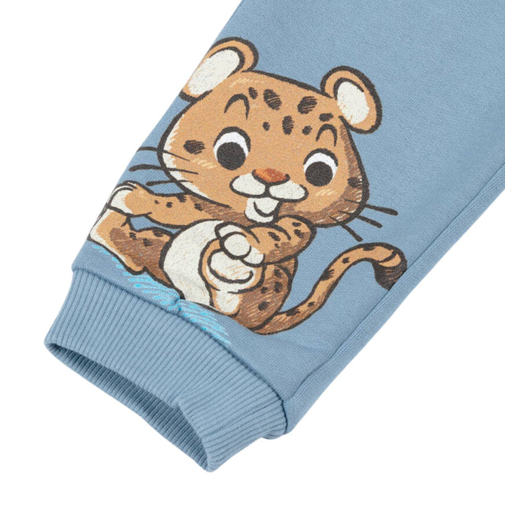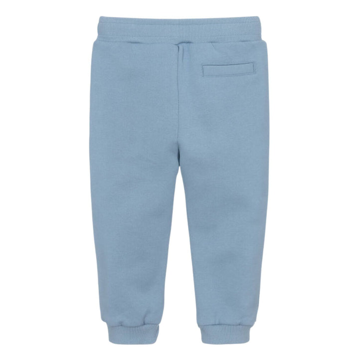 Baby boys blue logo-print fleece trousers by Dolce & Gabbana crafted from soft cotton fleece with the iconic logo detail, offering warmth, comfort, and everyday luxury style.