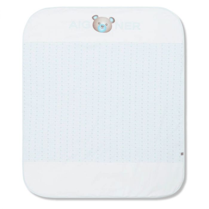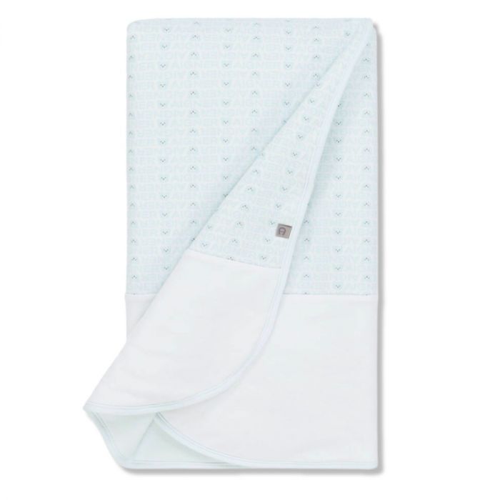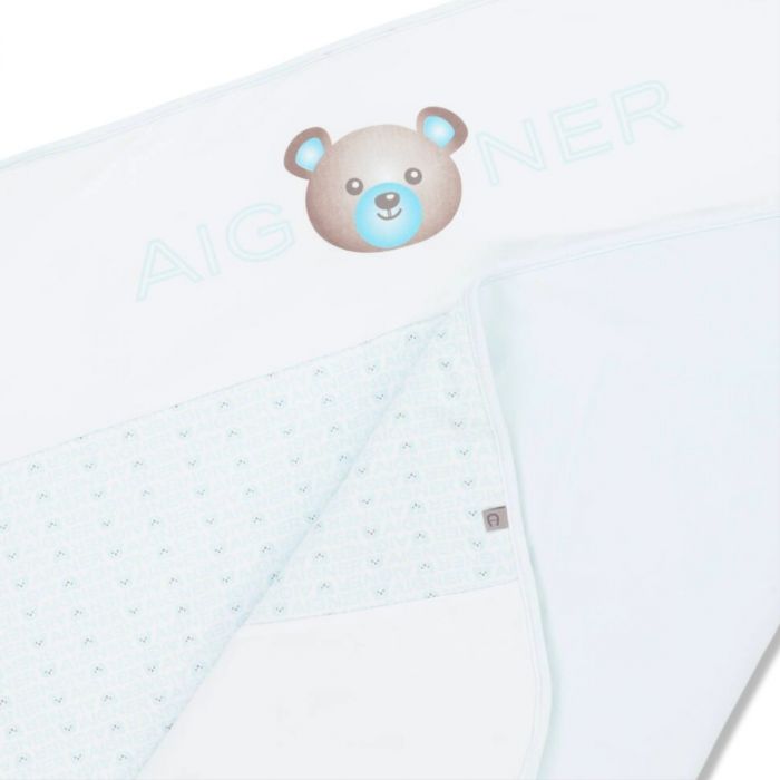 Sweet pale blue blanket for baby boys by AIGNER, made from super soft Pima cotton jersey with lightweight padding. Providing gentle comfort for delicate skin, this cosy blanket has a cute teddy bear logo pattern and print. A versatile accessory, it is ideal for use in the pram, car seat or nursery, and as a soft surface for tummy time.