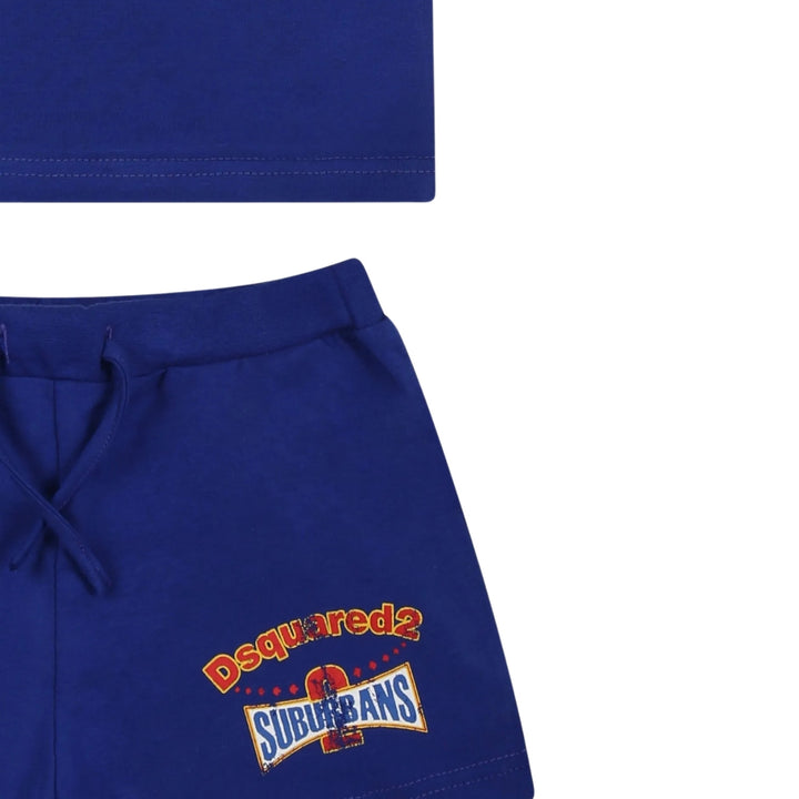 The DSQUARED2 KIDS logo-print short set in blue is a stylish and comfortable choice for warmer days. Featuring a crew neck, short sleeves, and an elasticated drawstring waistband for a flexible fit, this set combines both fashion and ease. The press-