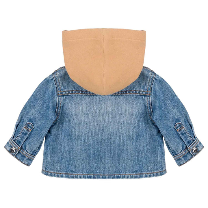 Baby Boys Denim Blue Teddy-Patch Hooded Jacket