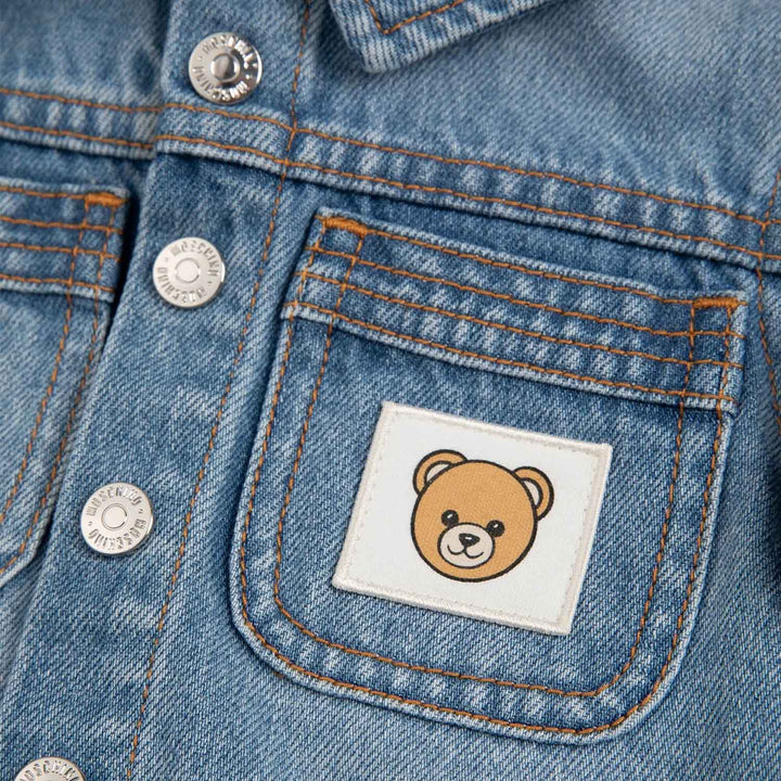 A trendy denim piece featuring the brand Is iconic teddy bear patch. Designed with a cozy hood and soft lining, it combines playful charm with everyday comfort.