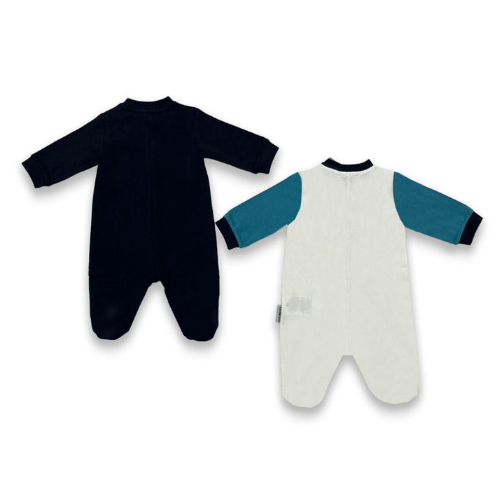 Baby Boys Blue & White Logo Print Romper Set (2 Pack )