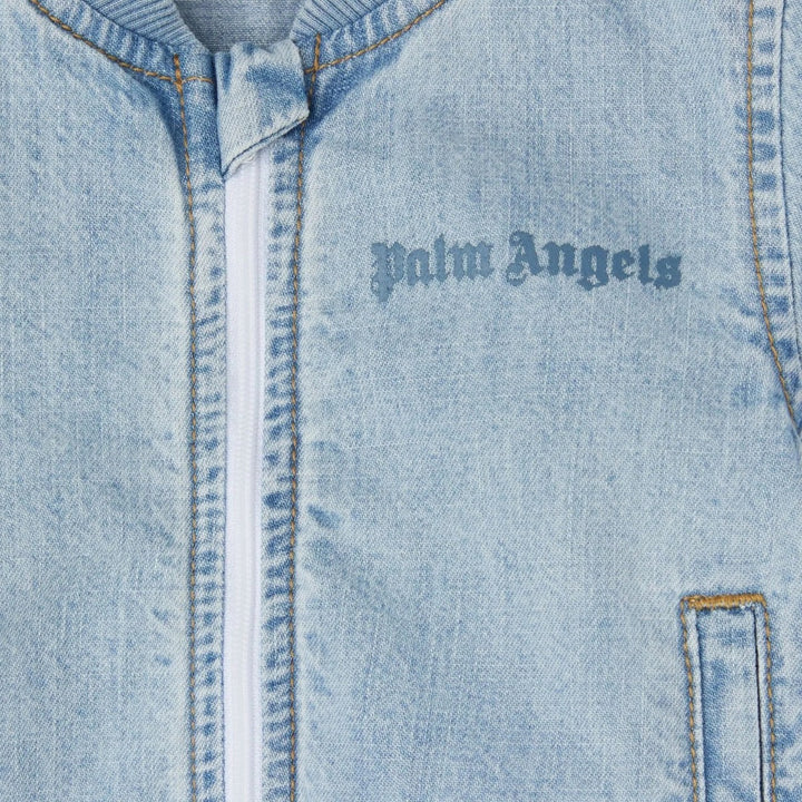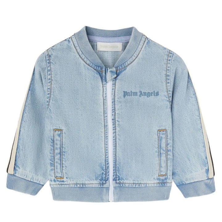 Baby Boy blue chambray jacket with front zip fastening, embroidered logo, two front welt pockets, and ribbed cuffs and hem for a stylish and comfy fit.