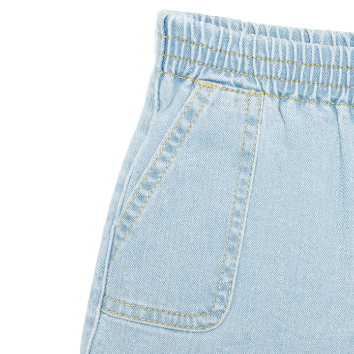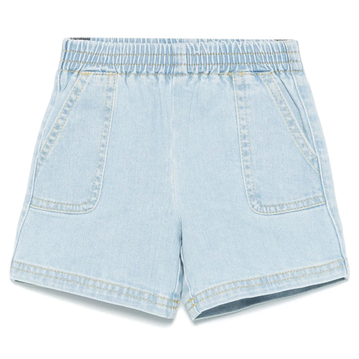 Baby Boy Light blue shorts designed for comfort and style, featuring an elasticated waistband, two side patch pockets, and two rear patch pockets for a practical yet relaxed look.