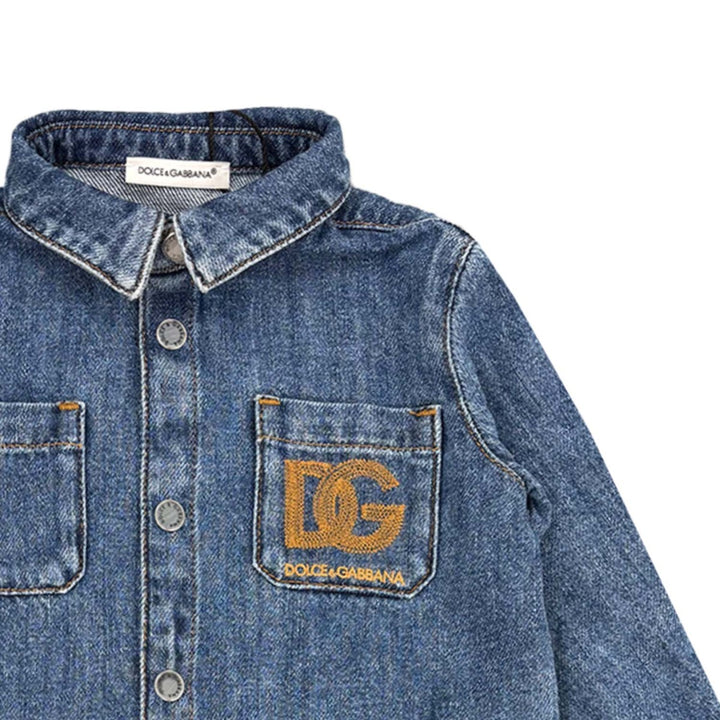 Style your little one in timeless fashion with this baby boys' denim shirt from Dolce & Gabbana Kids. Made from soft, breathable cotton, this classic blue button-up design features a smart collar, front button fastening, and long sleevesperfect for both casual and polished occasions. Durable yet comfortable, its an everyday essential with signature Italian craftsmanship.
