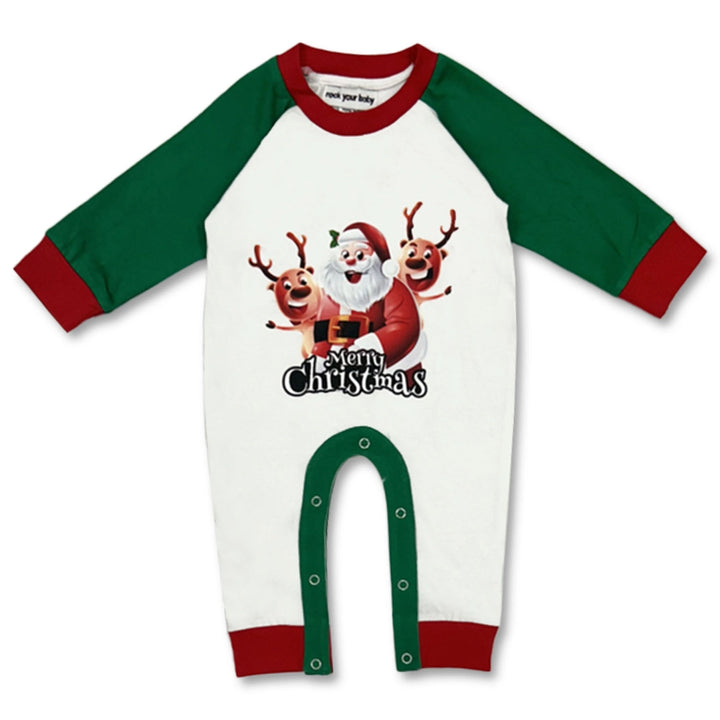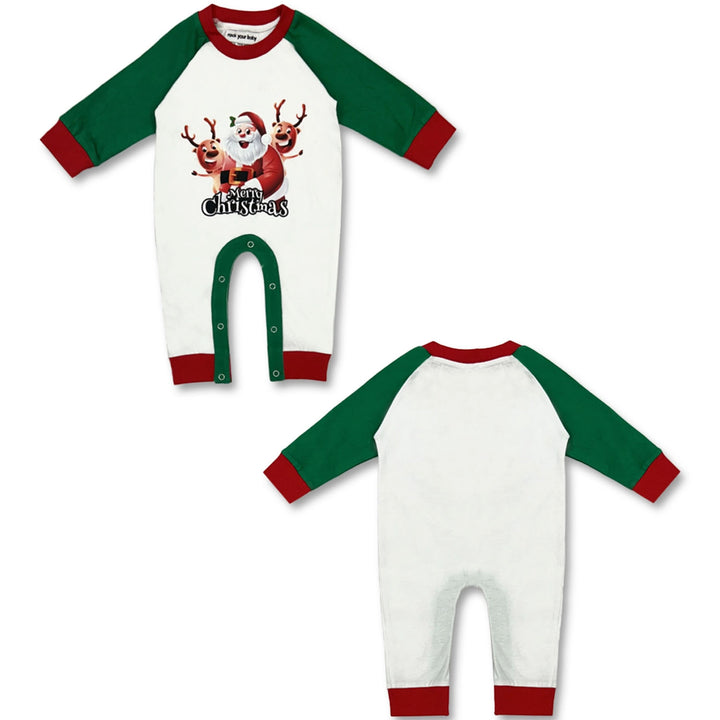 Baby Boys Green & White Merry Christmas Santa Rompers