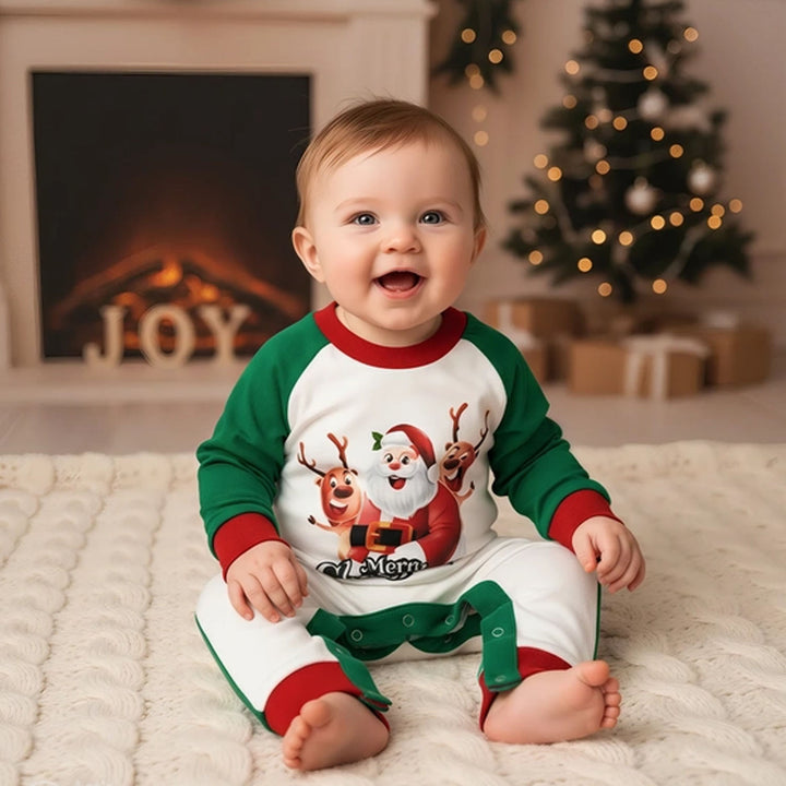 Baby Boys Green and White Merry Christmas Santa Rompers bring festive cheer with their bright holiday colors and cute Santa print. Made from soft, breathable fabric, this romper ensures all-day comfort and ease of movement, perfect for Christmas celebrations, family photos, and joyful holiday moments.