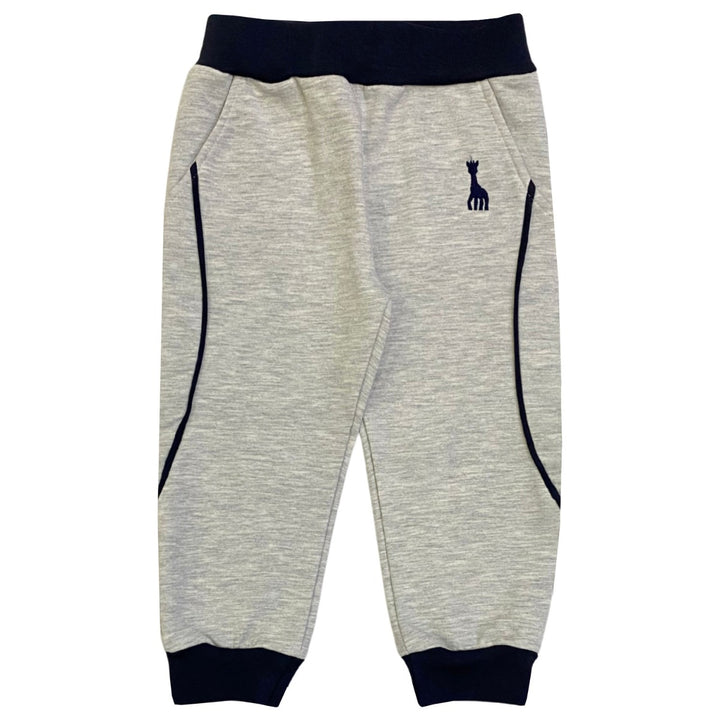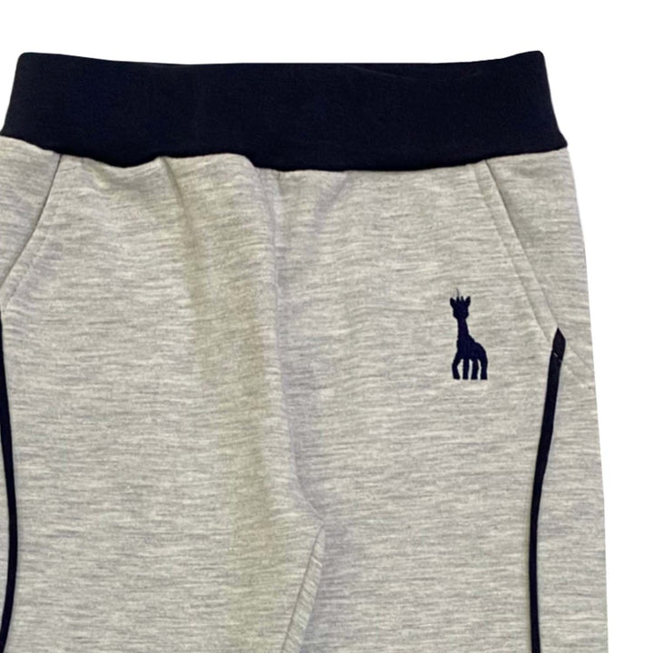Comfortable grey trousers featuring an embroidered Sophie la Girafe logo print, designed for a soft feel and stylish everyday wear.