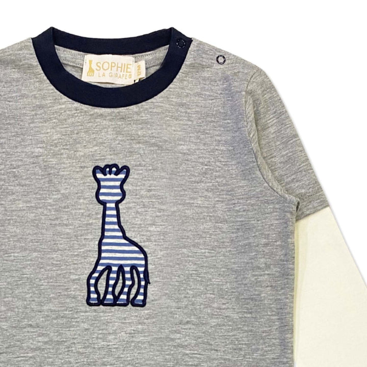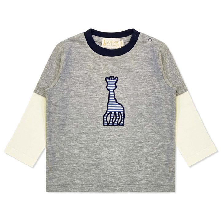 Casual yet refined, this grey T-shirt is detailed with the iconic embroidered Sophie La Girafe logo, offering soft comfort with a stylish finish.