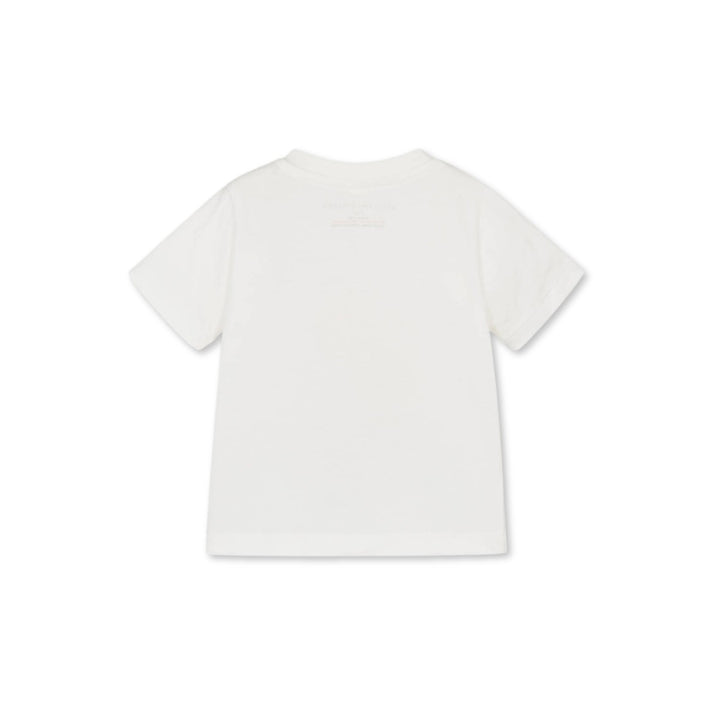 Lovely ivory T-shirt for little boys by Stella McCartney Kids, made in soft cotton jersey. The front is printed with a colourful 'Bee Happy, Bee Kind' slogan and sunshine yellow bee motif for a happy look. This short-sleeved T-shirt fastens with popp