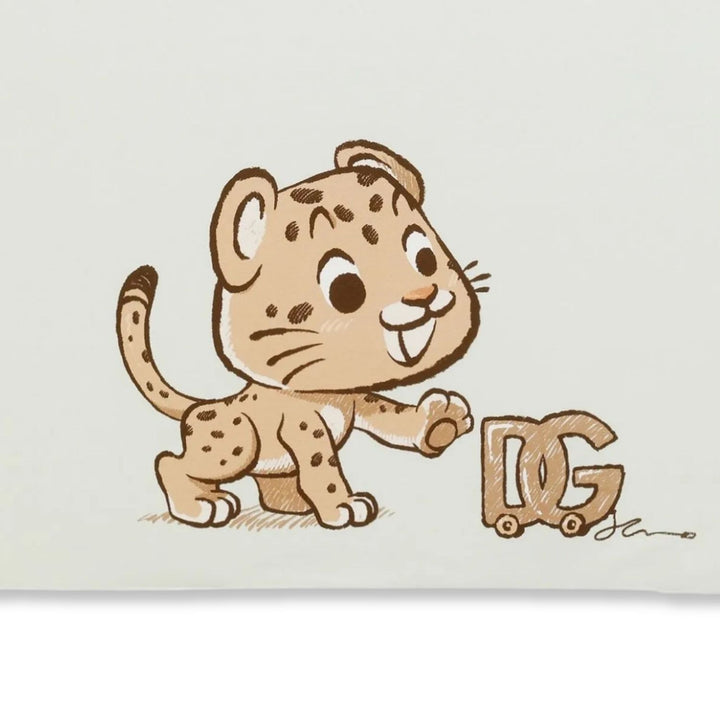 Baby boys ivory leopard-print blanket by Dolce & Gabbana, made from soft cotton with the brands signature animal motif combining comfort with a touch of luxury.