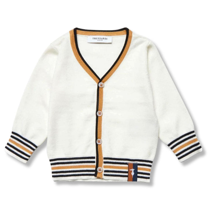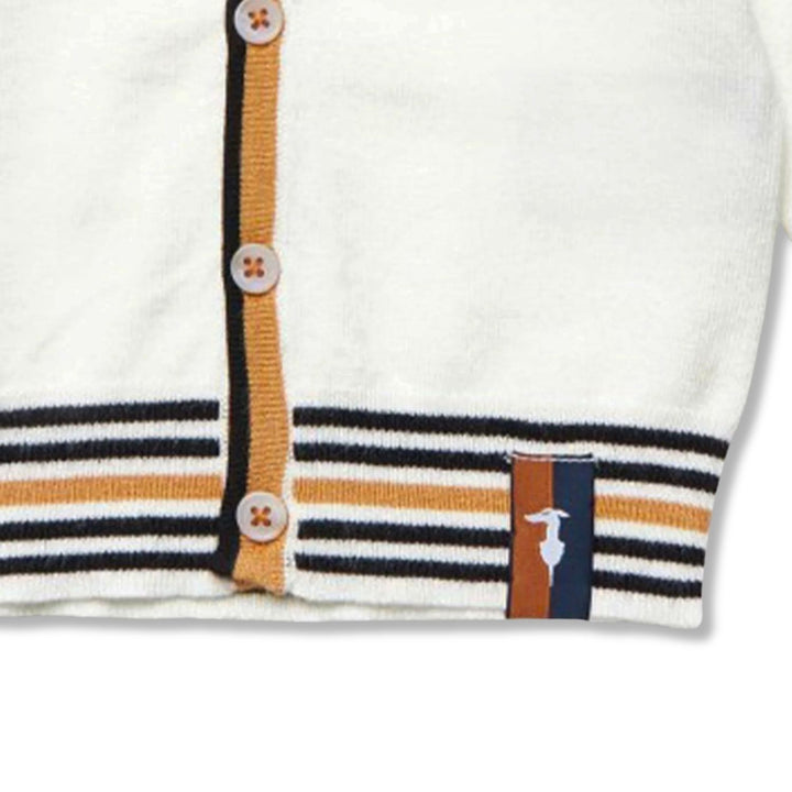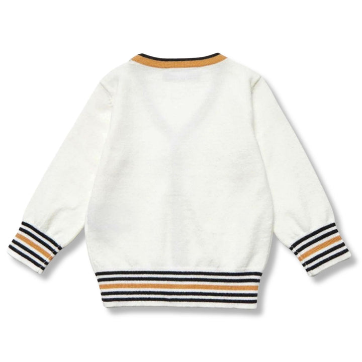 A cozy ivory sweater for baby boys featuring a stylish logo patch on the chest. Knitted from soft, comfortable fabric perfect for everyday warmth with a classic, refined look.