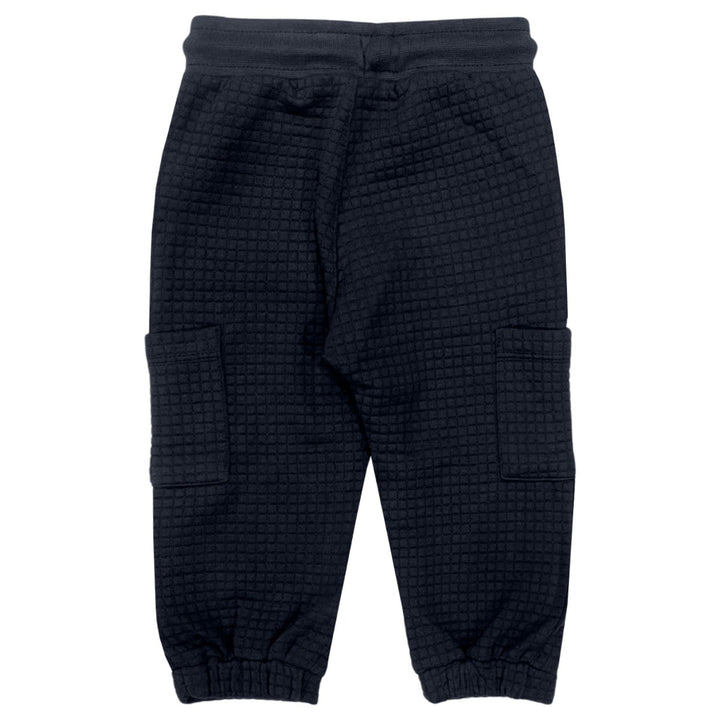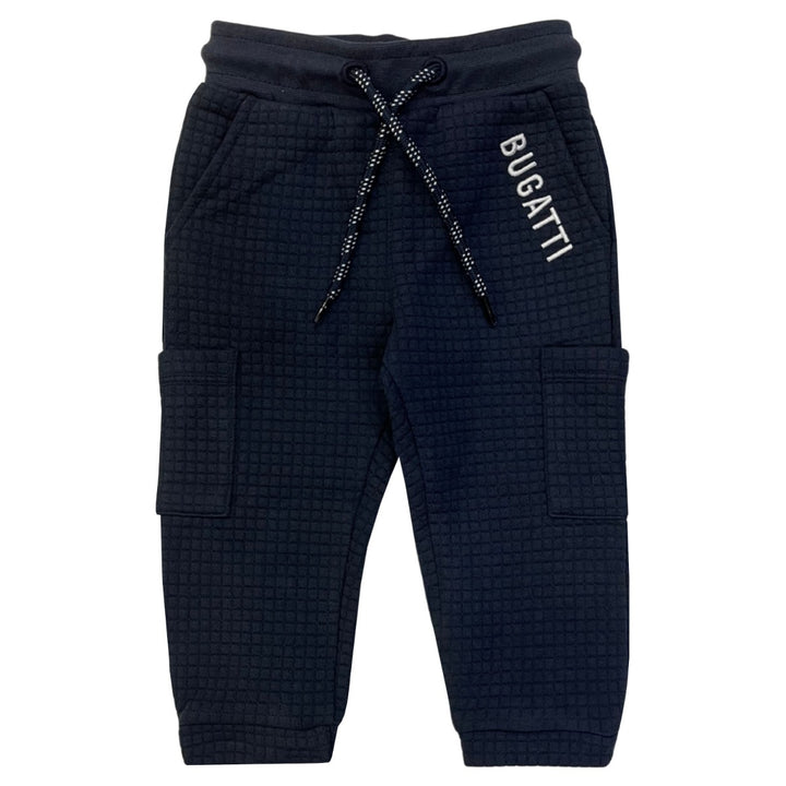 This navy blue woolen trousers feature a subtle embroidered logo and a soft, warm feel. Designed with an elasticated waist for comfort and easy movement.