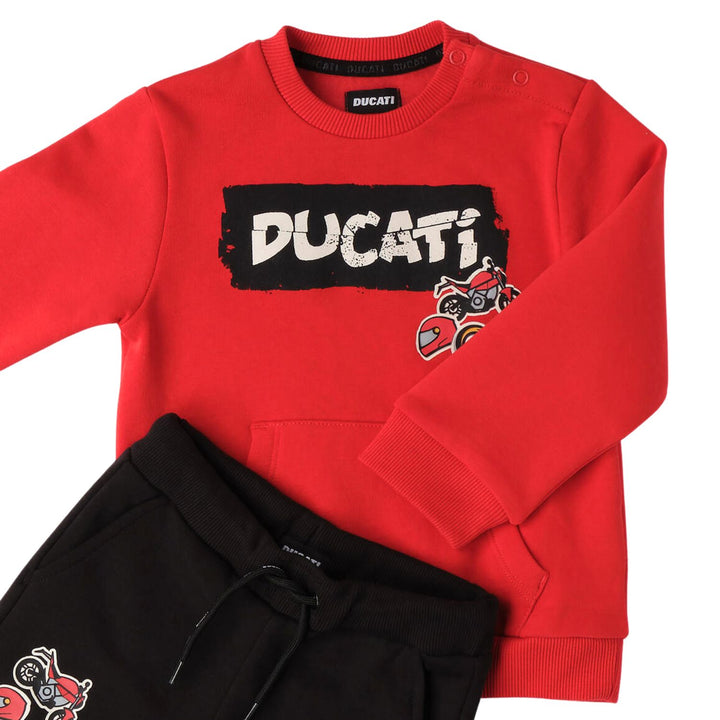 This Baby Boys Red & Black Logo-Print Trouser Set by Ducati combines soft comfort with bold style, featuring signature logo detailing and a striking color contrast for a refined everyday look.
