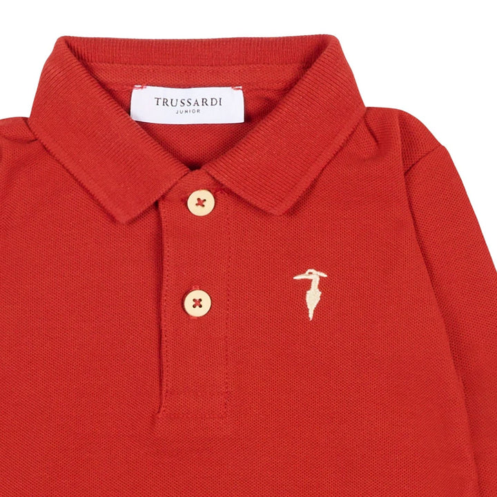 A classic red polo T-shirt for baby boys featuring a premium embroidered logo on the chest. Made from soft, breathable cotton for all-day comfort and a smart, stylish look.