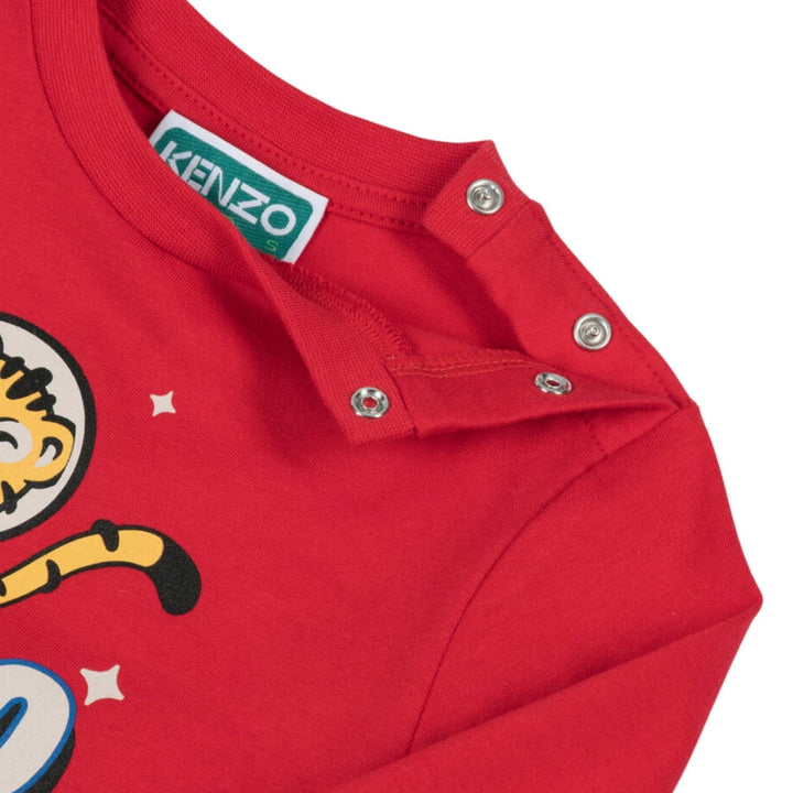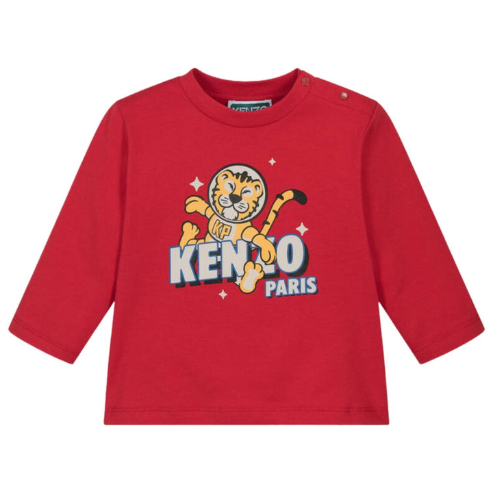 This vibrant red long-sleeved T-shirt for little boys by KENZO KIDS features the brand's playful tiger graphic dressed as an astronaut. Made in soft organic cotton jersey, it has a crew neckline and practical poppers on one shoulder for easy dressing