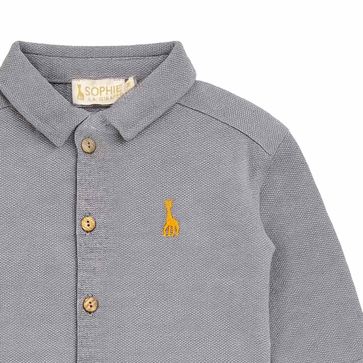 Stylish silver shirt adorned with an embroidered Sophie la Girafe logo print, offering a soft feel and a smart look for special occasions or casual outings.