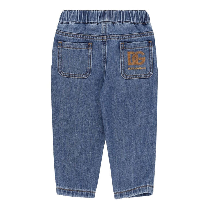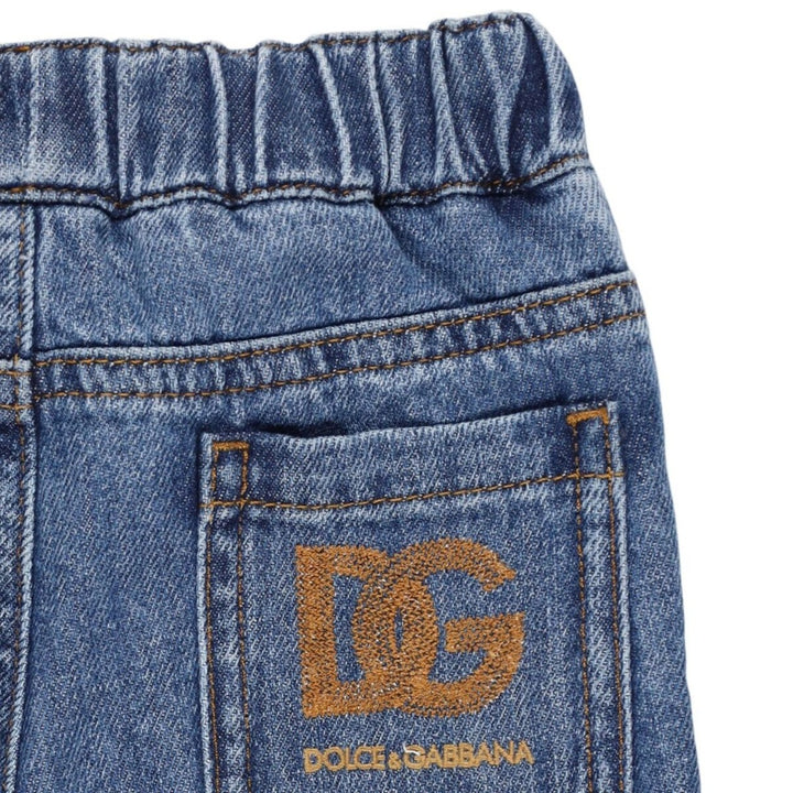 Keep your little one comfy and stylish with these pull-on denim pants from Dolce & Gabbana Kids. Designed with ease and movement in mind, they feature an elasticated waistband for quick changes and a soft, flexible cotton denim fabric perfect for active toddlers. A classic blue wash gives them a timeless lookideal for everyday adventures with a designer touch.