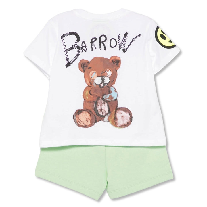 White T-shirt and Shorts Set in green with front logo print and rear graphic. Elasticated waistband for comfort.
