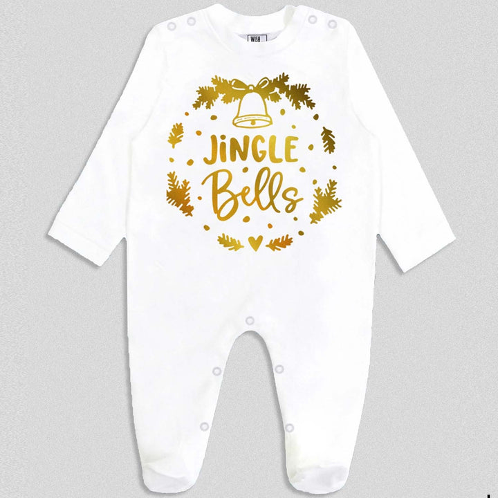 Baby Boys White Jingle Bells Print Rompers